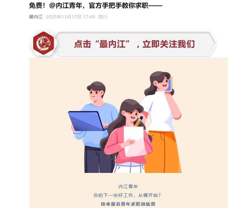 内江青年你的下一份好工作,从哪开始?快来报名青年求职训练营(官方认证,纯免费)专家讲课小组讨论优化简历模拟面试四大流程,只讲干货让你从求职到面试到入职..