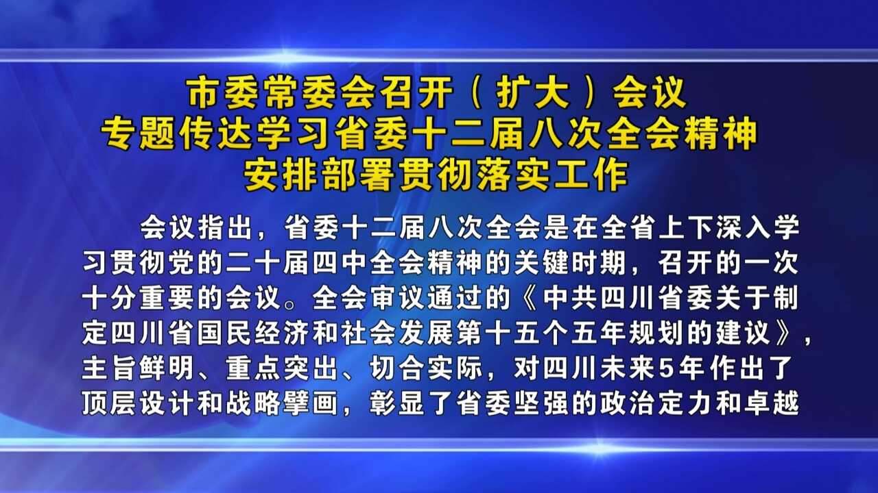 市委常委会召开(扩大)会议 专题传达学习省委十二届八次全会精神 安排部署贯彻落实工作