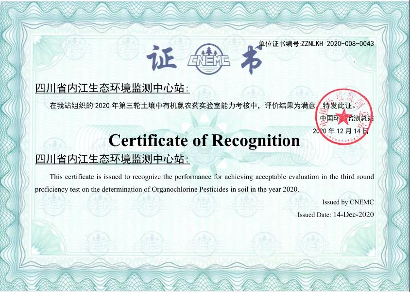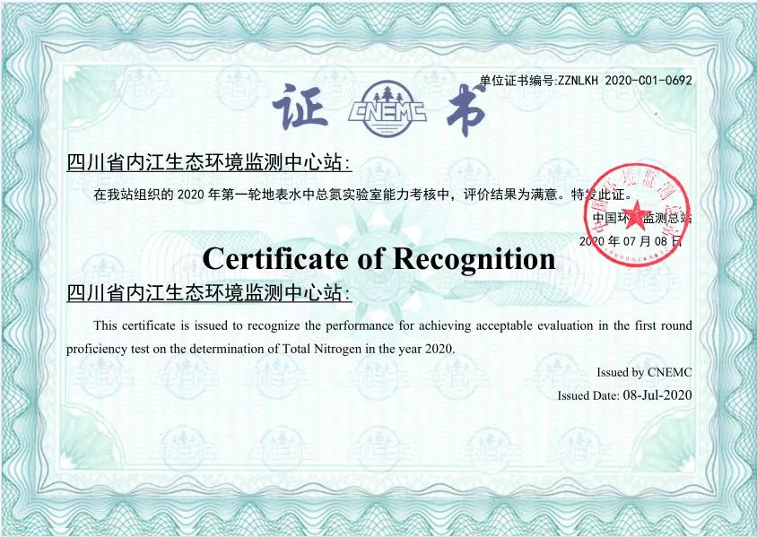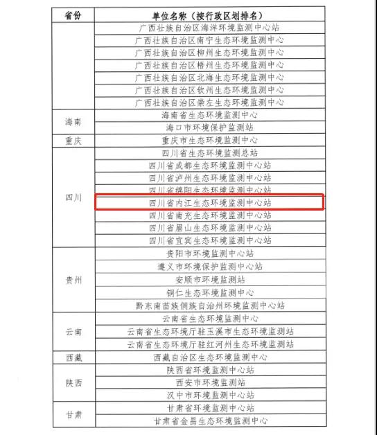 1月18日,中国环境检测总站发布2020年能力考核优秀单位名单,四川省内江生态环境监测站在中国环境监测总站组织开展的地表水中氨氮、总磷和总氮等4轮7个项目的实验室能力考核中,4轮考核结果均被评定为“满意”!被评为“2020能力考核优秀单位”。