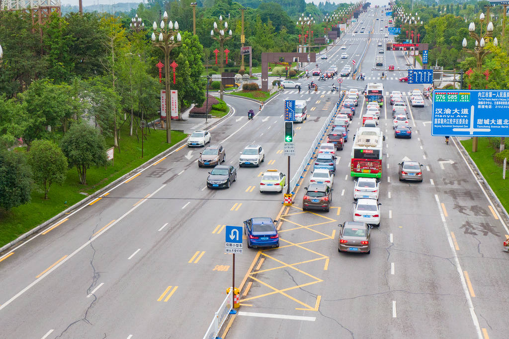 “通过分析,我们发现汉安大道甜城大道交叉口路段有明显的车流潮汐现象。”内江市交警支队支队长曾令忠介绍,根据这一情况,内江交警邀请专家团队实地勘察、分析研判,对该路口启动了潮汐式借道左转车道改造,并于8月3日正式投入运行。“效果立竿见影,投用一个月以来,我们的执勤民警发现,哪怕在早高峰时间,大部分车辆都可以在一个信号周期内通过路口,大大缩短了群众交通出行时间。”