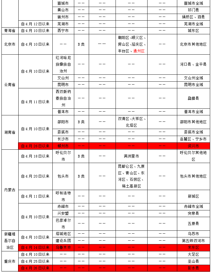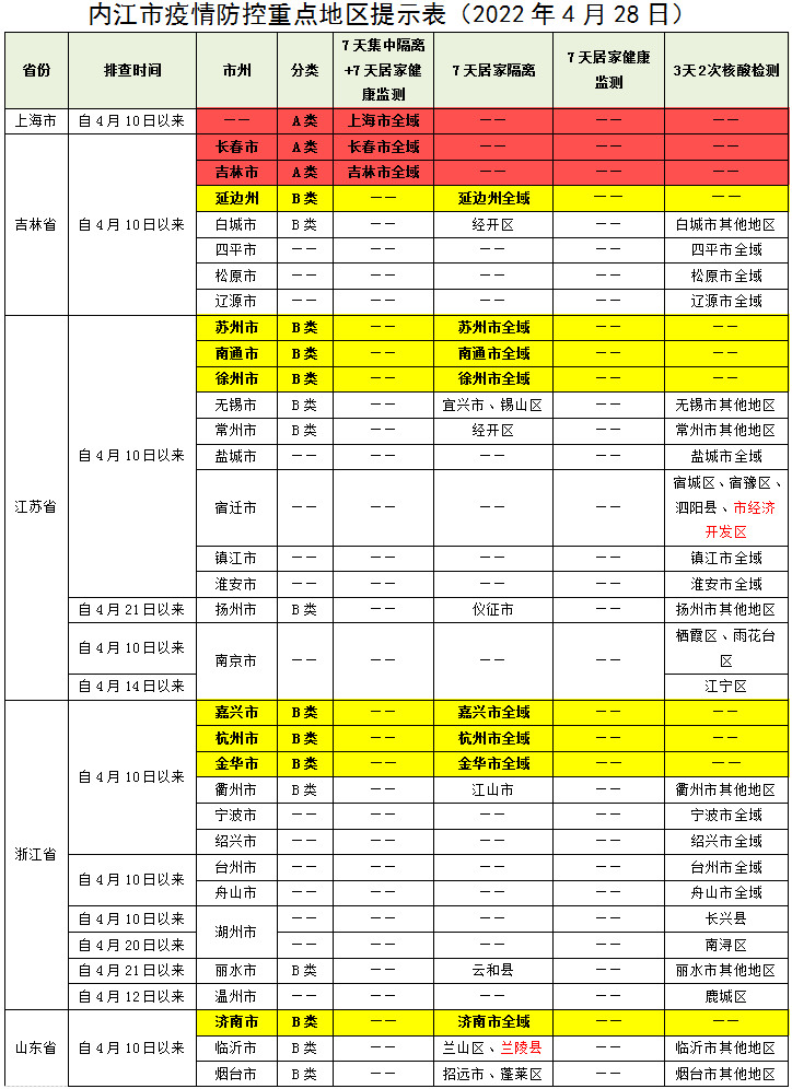 内江市疫情防控重点地区提示表(2022年4月28日)