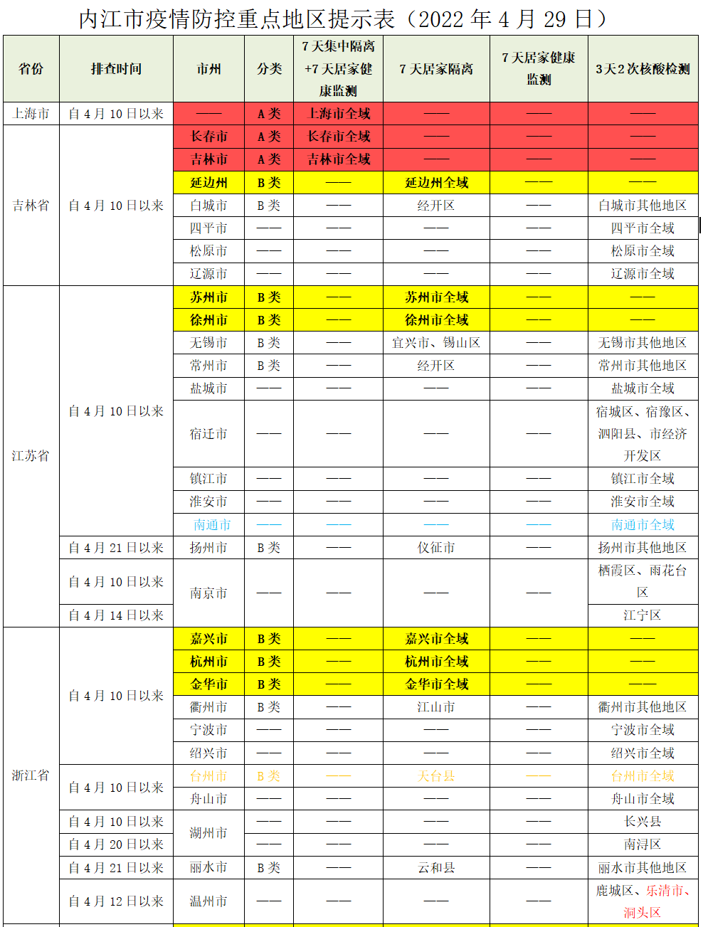 内江市疫情防控重点地区提示表(2022年4月29日)
