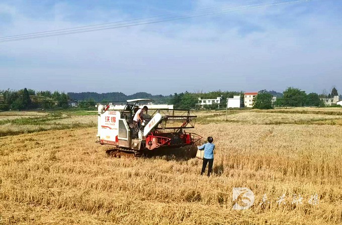 5月5日,在内江市东兴区石子镇万亩优质粮油现代园区内,当地农户正在全力采收成熟的小麦,田间地头机器轰鸣,一派丰收景象。