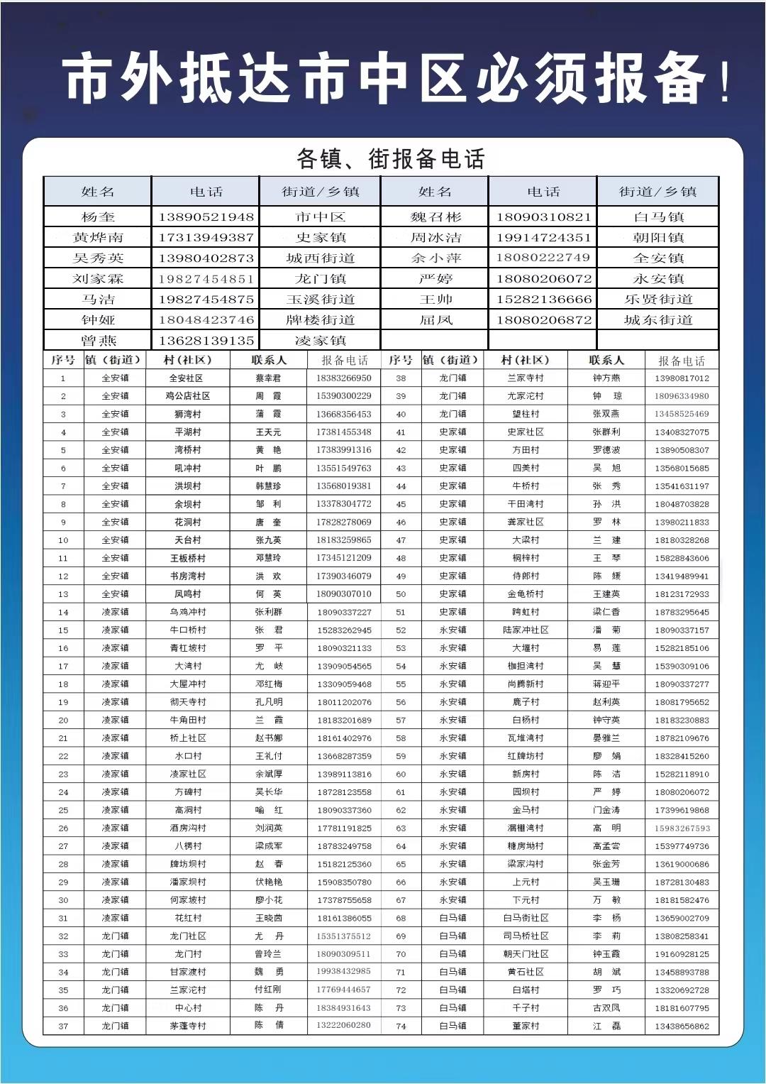 各村(社区)报备电话