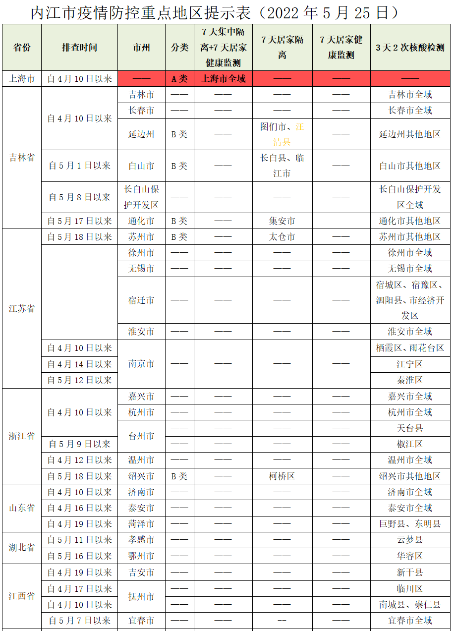 内江市疫情防控重点地区提示表(2022年5月25日)
