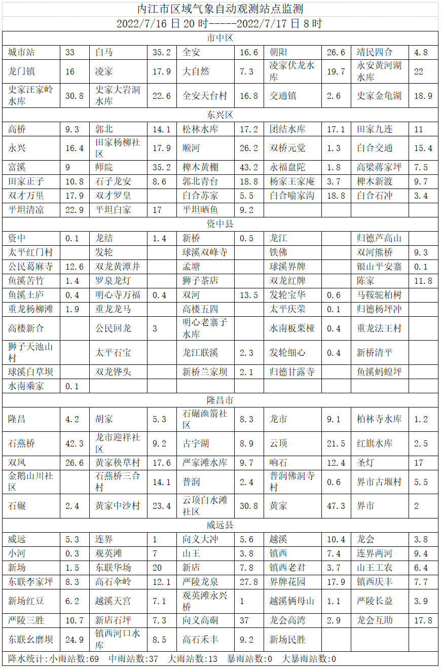 时间:2022-07-17 08:22:50 来源:内江市气象台今早内江市气象台发布最新雨情通报,详情如下: