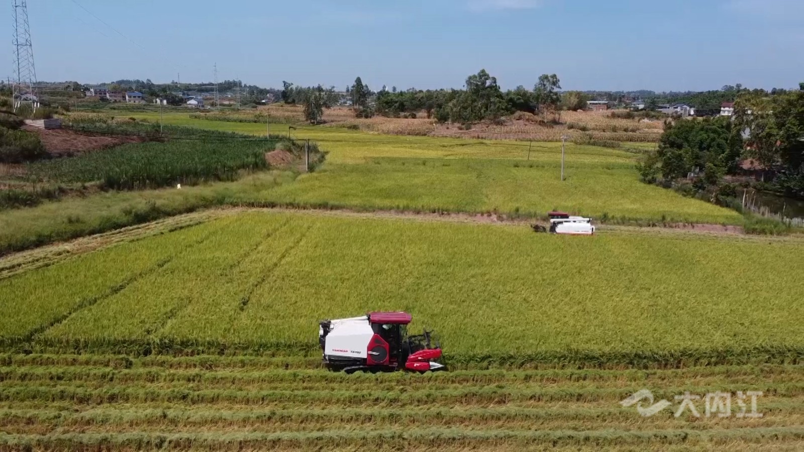 这两天正值水稻收割的时节,资中县“五良”融合宜机化改造项目示范区迎来了首次水稻丰收季,一台台收割机正在金色的田野里来回穿梭,确保水稻“颗粒归仓”。