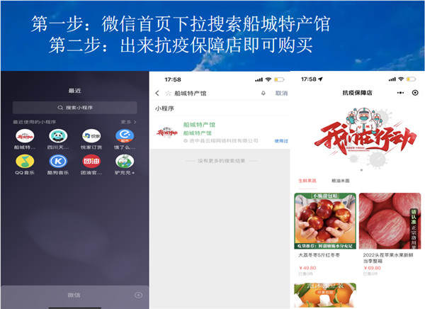 “抗疫保障”生活物资采购线上商城是资中县商务和经济合作局委托县电商中心运营商资中云翔网络科技有限公司注册开通及运营管理的微信小程序商城,由资中县市场监督管理局负责收集资中县域内市场经营主体和餐饮企业的生活物资库存信息,由资中云翔科技公司把3类产品上架至商城,市民通过商城下单购买的商品,由资中县邮政管理局负责统筹无接触配送到小区接收点,再由社区、村(居)委会组织分送至订购者。