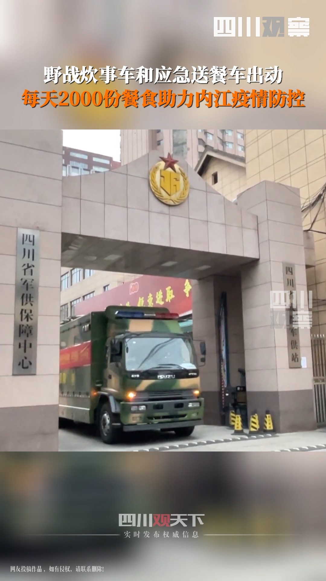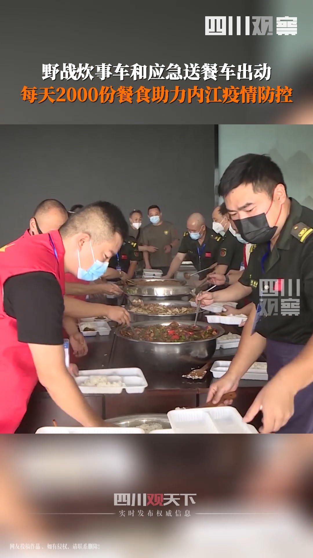 时间:2022-09-17 16:28:22 来源:四川观察在内江疫情防控的关键时期,四川省退役军人事务厅派出军供保障中心的应急保障分队,携带野战炊事车、应急送餐车等新型保障装备器材,星夜兼程,奔赴内江抗疫一线,每天为当地提供2000份餐食,为疫情防控工作贡献军供力量。