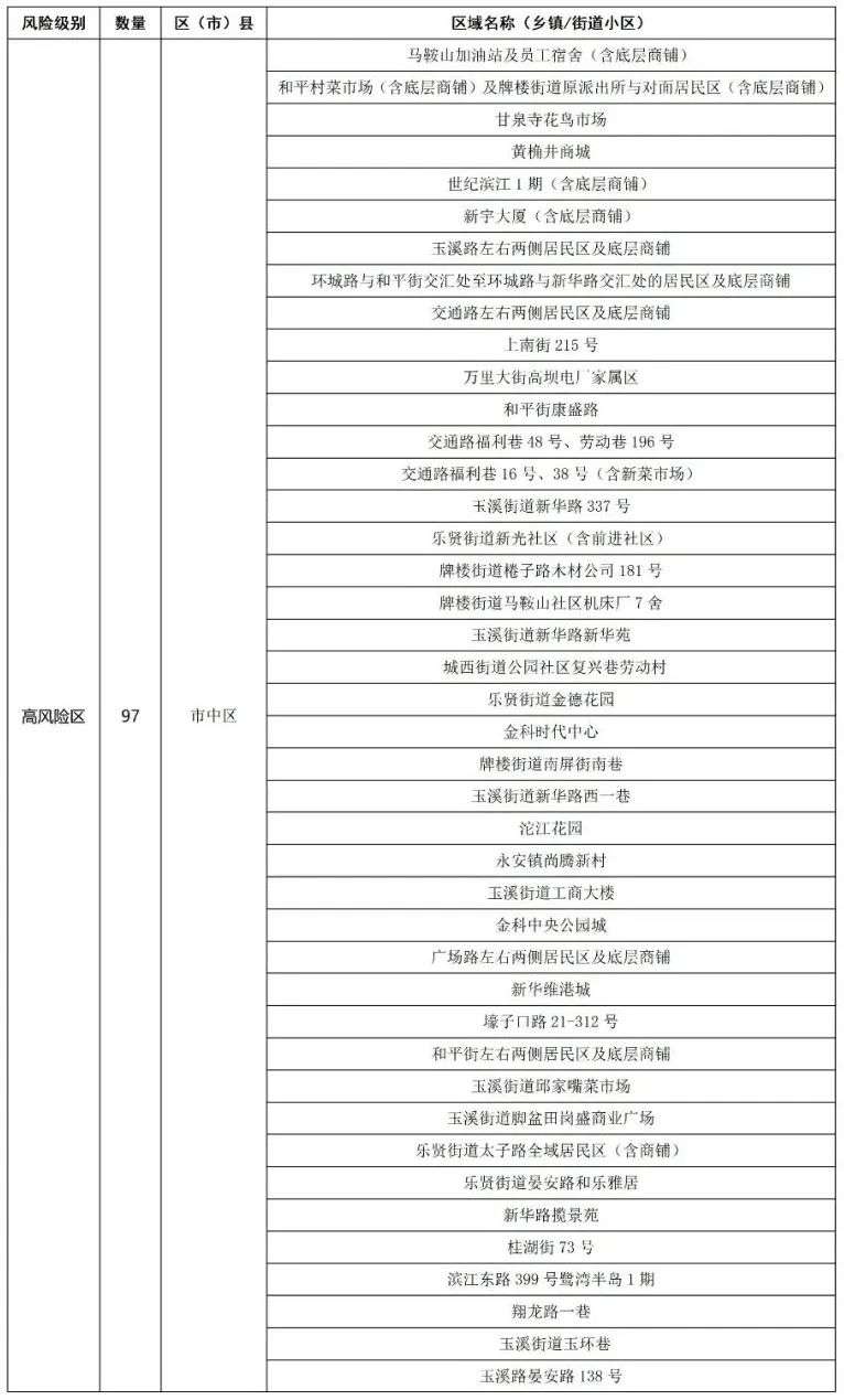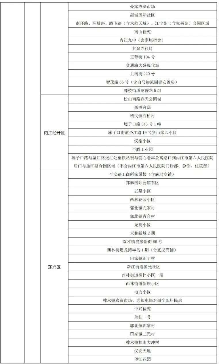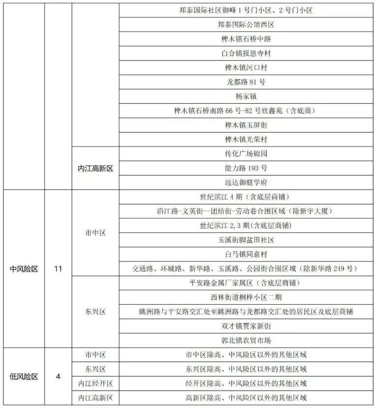 内江市高中低风险区一览表