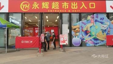 在威远,超市入口疫情防控服务点,小喇叭循环播放进入超市的要求,顾客在工作人员的引导下落实无接触测温、扫码登记等防控措施,确认无误后方可进入。超市内,购物的顾客及工作人员都规范地佩戴好口罩,并在各称重处和收银台设置了“一米线”,引导顾客有序排队称重,避免扎堆。