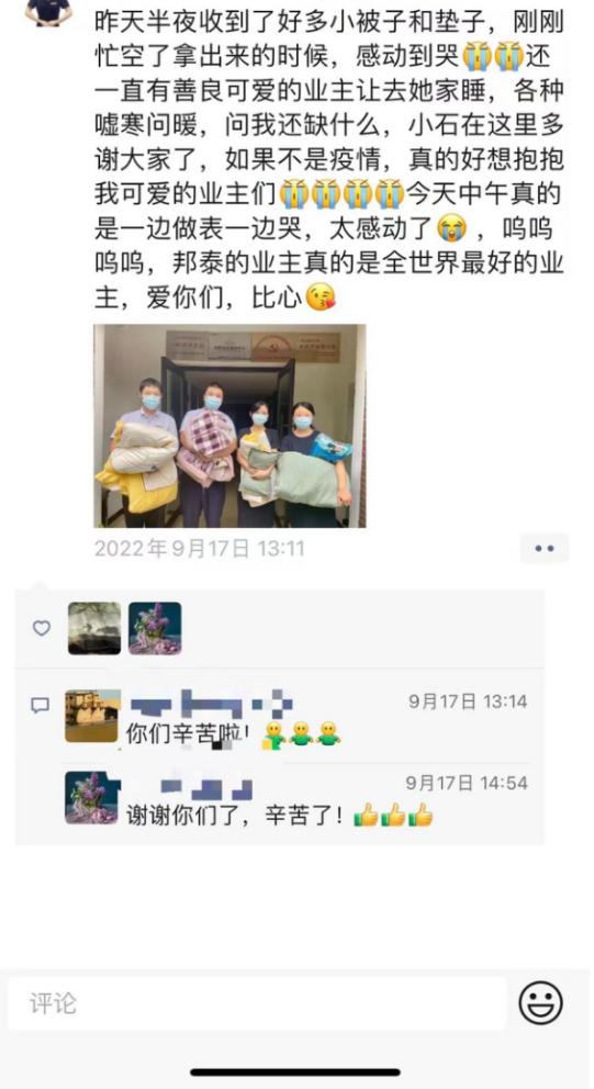 在业主群的聊天记录里,出现频率最高的几个词分别是:“感谢、加油和理解。”