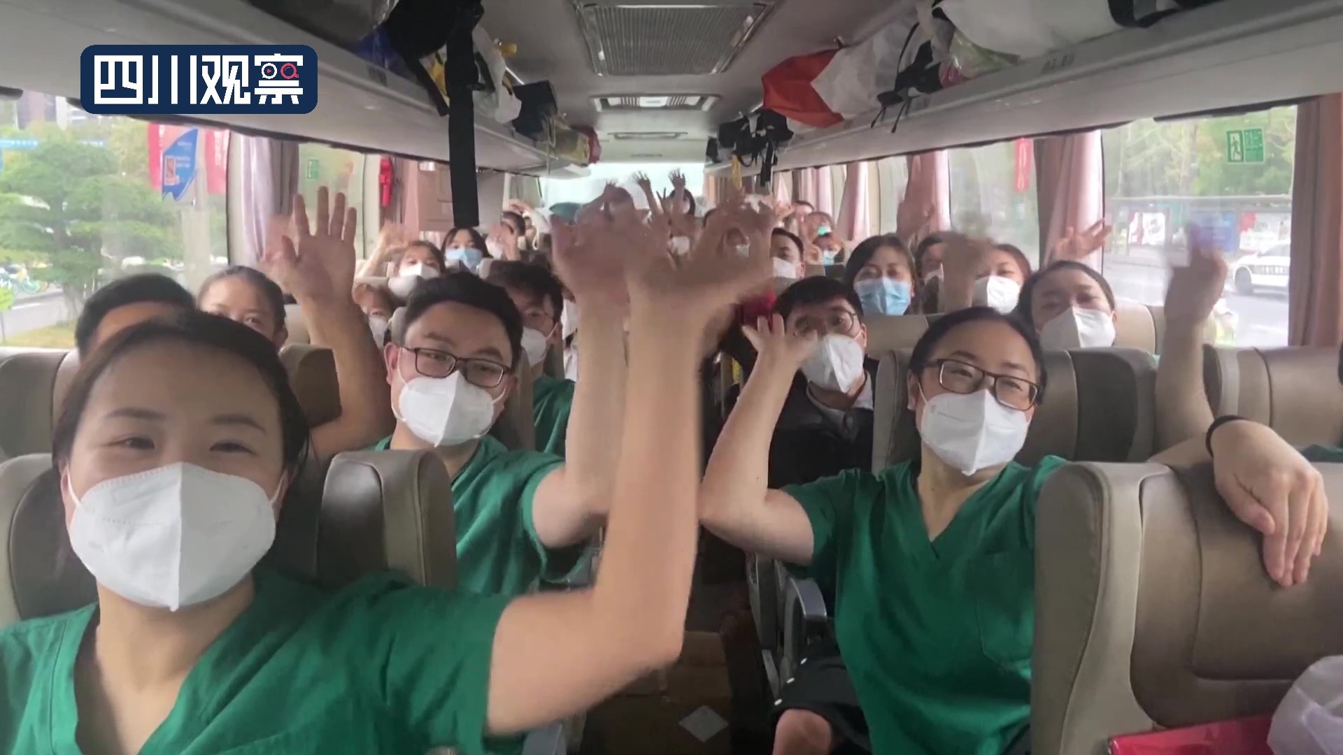 在交警的护航下,16辆张贴着“乐山情 内江行 请把感恩带回‘嘉’”“ 同饮一江水 抗疫心连心”等字样的大巴车缓缓启动向内江高速路口驶去,市民们纷纷挥手告别,由衷感谢他们的无私援助和辛勤付出。