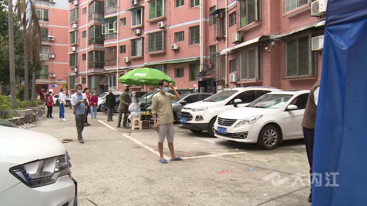 在东兴区碧云社区一核酸采样点前,志愿者、社区工作人员、医务人员通力协作,居民积极配合,整个核酸采样过程高效有序。