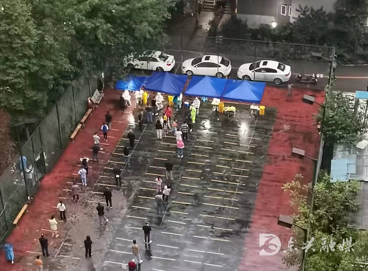东兴区广汇核酸采集点位正在有序进行核酸采集。