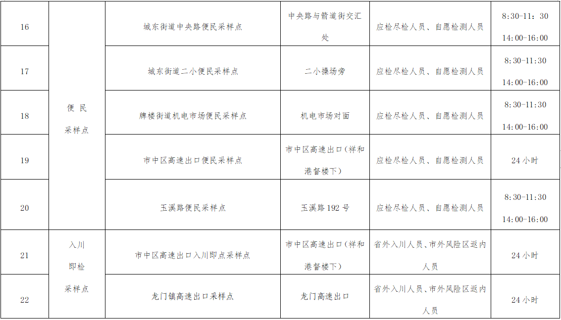 便民核酸采样点通告
