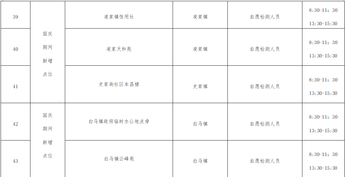 采样地点和开放时间见下图。后期将根据需要和疫情形势变化动态调整,请及时关注采样点公布信息。