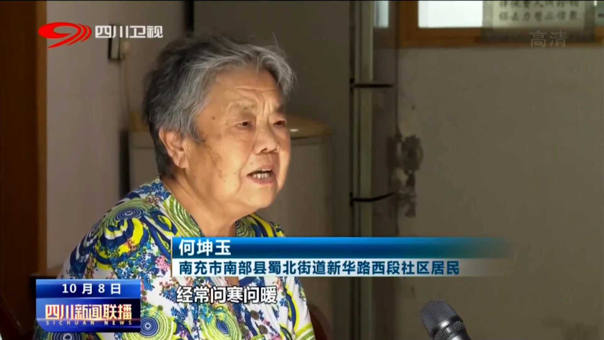 南充市南部县蜀北街道新华路西段社区居民 何坤玉:小郭像我女子一样,经常问寒问暖,到我家里面来收拾,平常多亲热的。