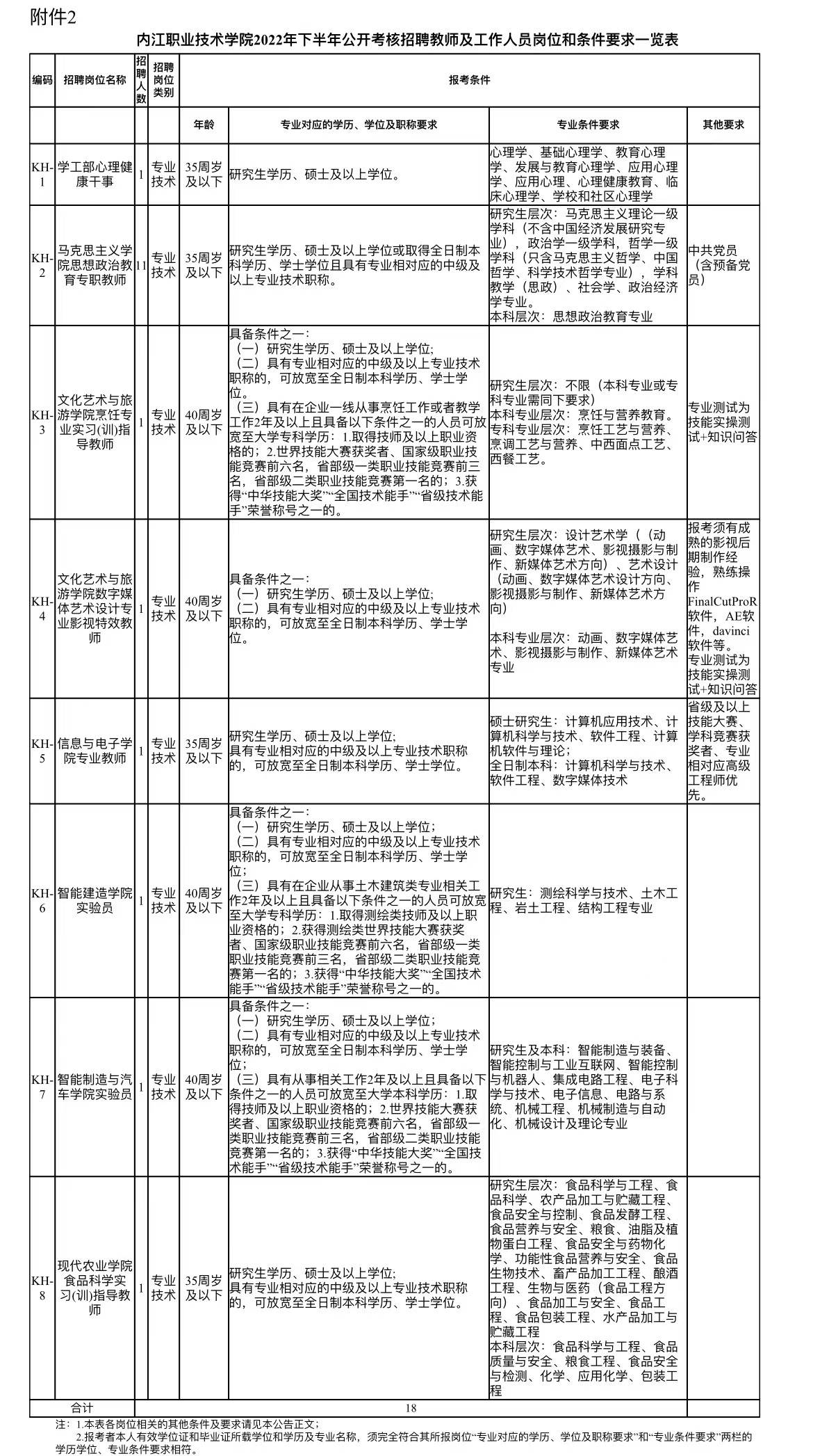 江粉儿从内江人事考试网了解到,内江职业技术学院面向社会公开考核招聘教师及工作人员18名,详情如下: