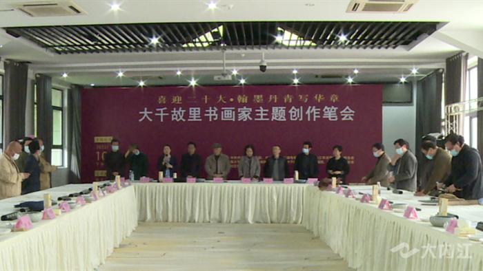时间:2022-10-14 18:37:44 来源:内江广播电视台10月14日,由内江市委宣传部、市文化广播电视和旅游局、市文学艺术界联合会举办的“喜迎二十大翰墨丹青写华章——大千故里书画家主题创作笔会”在张大千美术馆举行。活动汇集内江市30余名老中青艺术家,以大千画派创研基地书画家的艺术视角,创作出数十幅呈现内江城市之变、生态之美、乡村新貌的书画作品,喜迎党的二十大胜利召开。