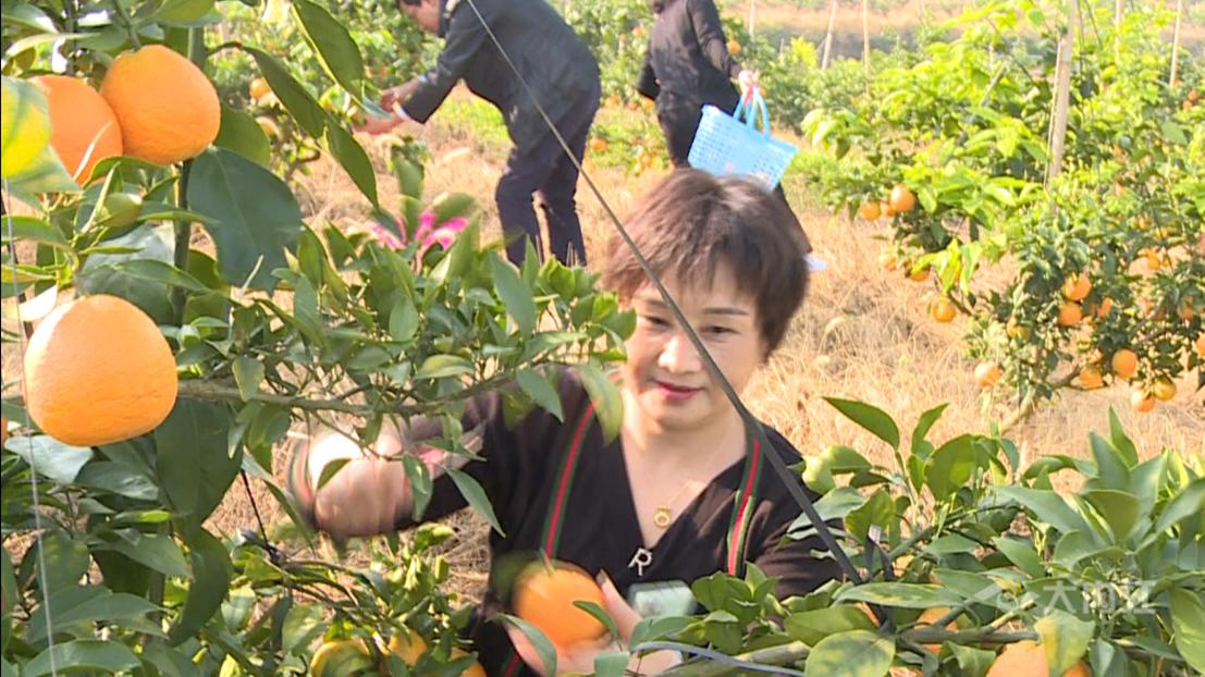 日前,记者在回龙桥村看到,漫山的柑橘树上挂满了黄澄澄的橘子,阵阵的果香吸引了众多游客前来采摘。