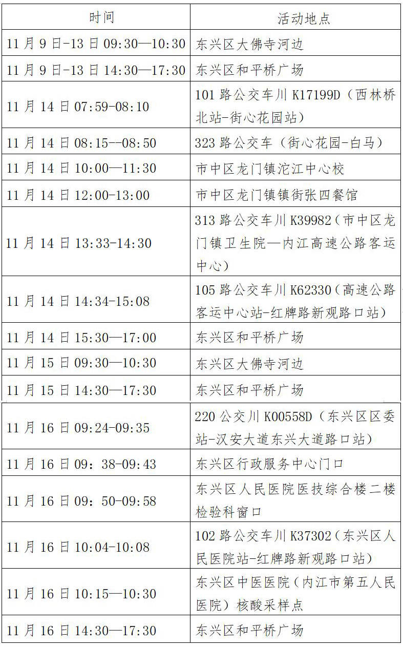 2022年11月16日,东兴区1名群众新冠病毒核酸检测结果呈阳性,经调查,该人员隔离前有以下活动轨迹:
