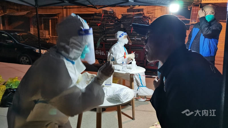 为坚决、迅速、果断扑灭疫情,全力保障人民群众生命安全和身体健康,11月23日,内江市市中区临时管控区域有序开展核酸检测,进一步构筑疫情防控安全屏障。清晨6点,社区网格员们已经在逐楼栋引导居民下楼接受核酸采集。