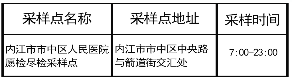 根据疫情防控最新要求,按照省、市、区统一部署,为更好满足愿检尽检市民朋友对核酸采样的需求,从即日起将原位于内江市市中区人民医院院内的愿检尽检人员采样点调整至内江市市中区中央路与箭道街交汇处的核酸采样点。请愿检尽检的市民朋友前往新址采样。