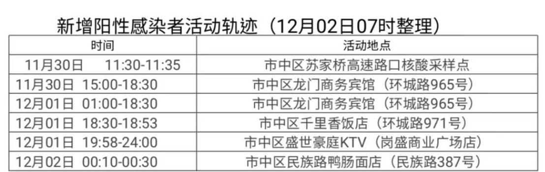 为方便市民排查风险轨迹,现将阳性感染者活动轨迹综合整理如下,请市民朋友们对照自查。如与以下活动轨迹有重叠,立即向村、社区和单位(或居住的酒店)报备,主动配合落实防控措施,如有瞒报将依法追究相关人员责任。