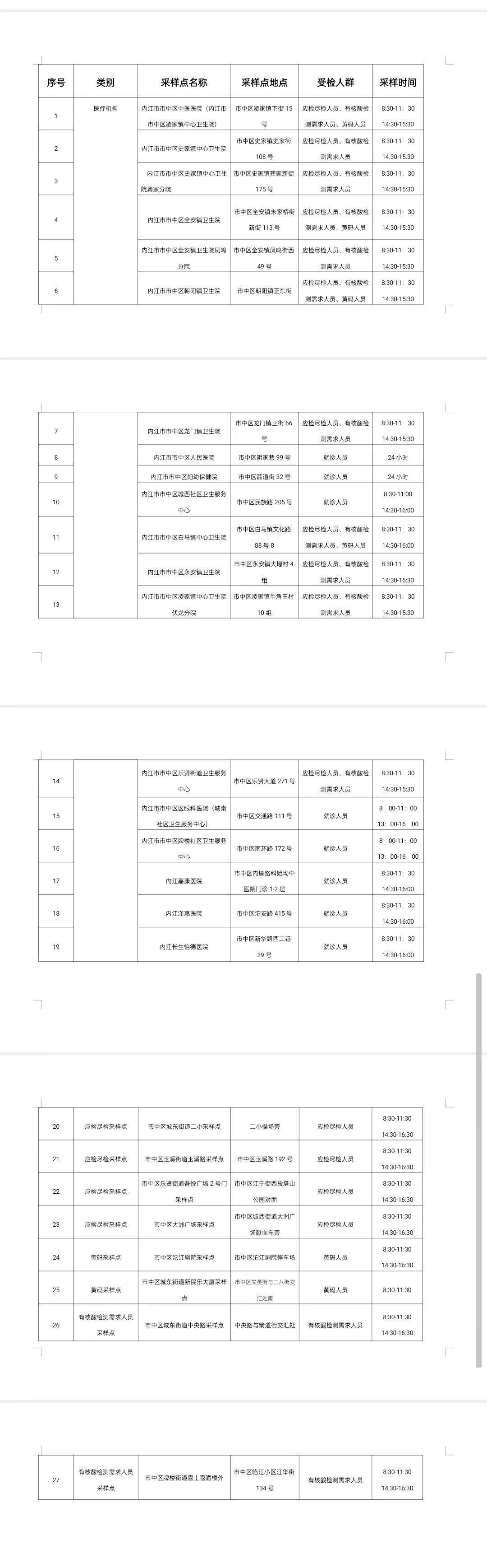 为认真贯彻省、市、区疫情常态化监测工作,落实疫情防控措施,现将市中区核酸检测点设置情况通告如下: