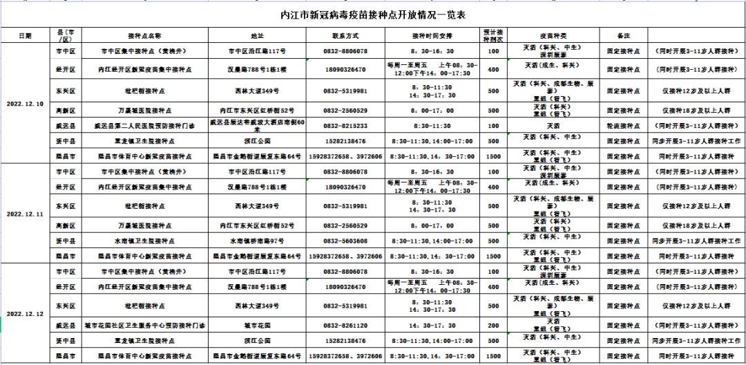 转需!12月10日-12日,内江这些地方可以接种新冠病毒疫苗