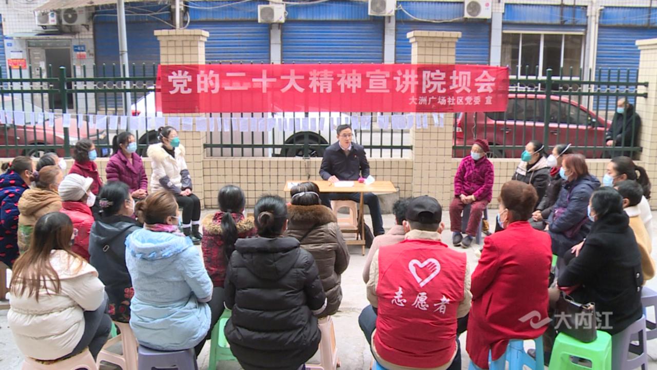 时间:2022-12-09 17:33:05 来源:内江广播电视台内江市市中区城西街道大洲广场社区的居民们有个习惯,不管是聊家长里短还是商议社区的大事,都习惯聚在院坝里“摆一摆”。12月9日,社区居民又聚在一起了,这一次的主题是学习党的二十大精神。