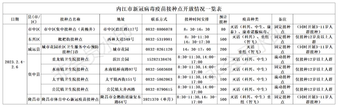 速看!2月4日-6日,内江这些地方可以接种新冠病毒疫苗