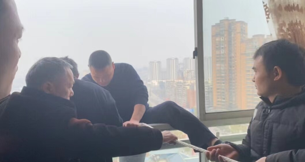 14楼!八旬老人命悬雨棚,内江民警生死营救