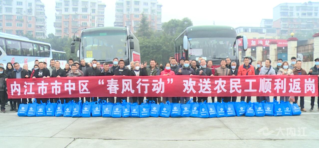 时间:2023-02-09 09:27:39 来源:内江广播电视台近日,市中区农民工服务中心开展“春风行动”点对点专车护航,组织首批75名农民工免费乘坐2辆大巴车前往山西太原、广东广州返岗复工。