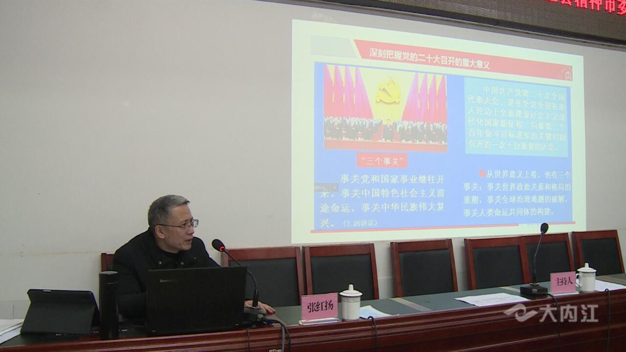 时间:2023-02-22 14:50:45 来源:内江广播电视台2月21日,内江市委宣讲团走进市中区教育与体育局宣讲党的二十大精神、省委十二届二次全会和市委八届五次全会精神。