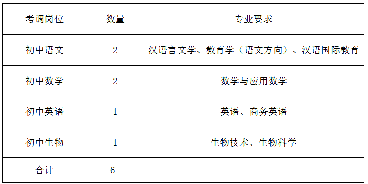 (二)翔龙中学考调岗位、数量及专业要求