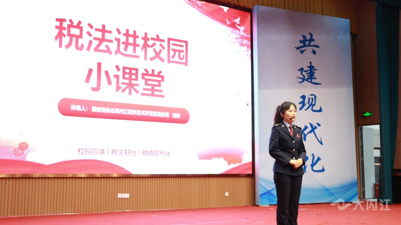启动仪式上,税务干部用通俗易懂的语言和生动有趣的案例,为学生们讲解了税收的来源、特点以及在国家和社会发展中所起的作用等,引导学生学习税法、遵从税法、宣传税法。现场还为“内江市青少年税法宣传教育基地”“内江市第六中学税法教育实践基地”揭牌,为6名学生颁发税法宣传员证书及绶带。