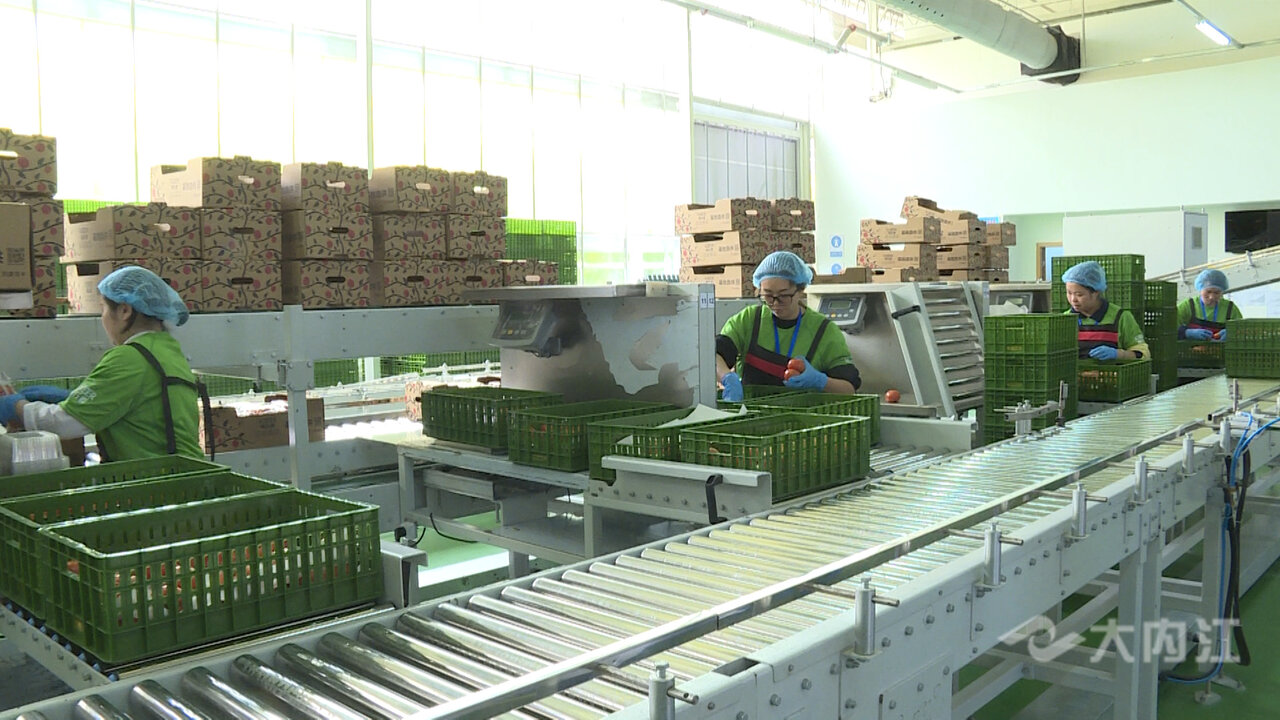新鲜采摘的西红柿按照品种、品相、大小等分类装筐后,被统一送到包装车间分拣打包运走,整个大棚犹如一座高效的绿色生产车间。