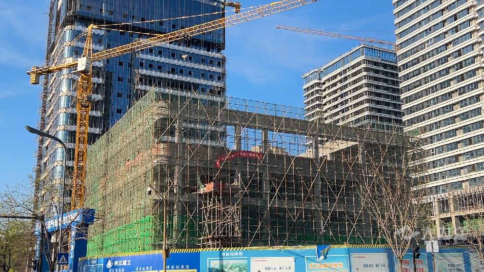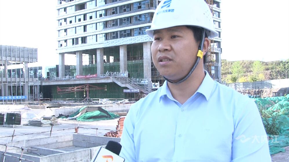 项目负责人刘祥介绍,目前已经完成所有楼栋主体结构及部分幕墙的施工,现在正在实施外立面装饰、内部装饰及总坪绿化工程,总工程量已完成约70%,预计6月底前可部分交付。