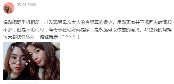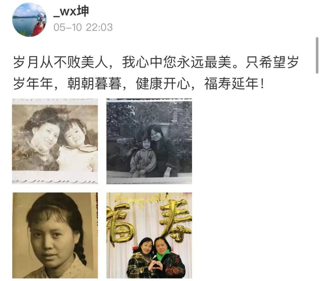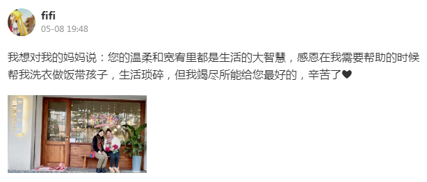 晒出了和妈妈的