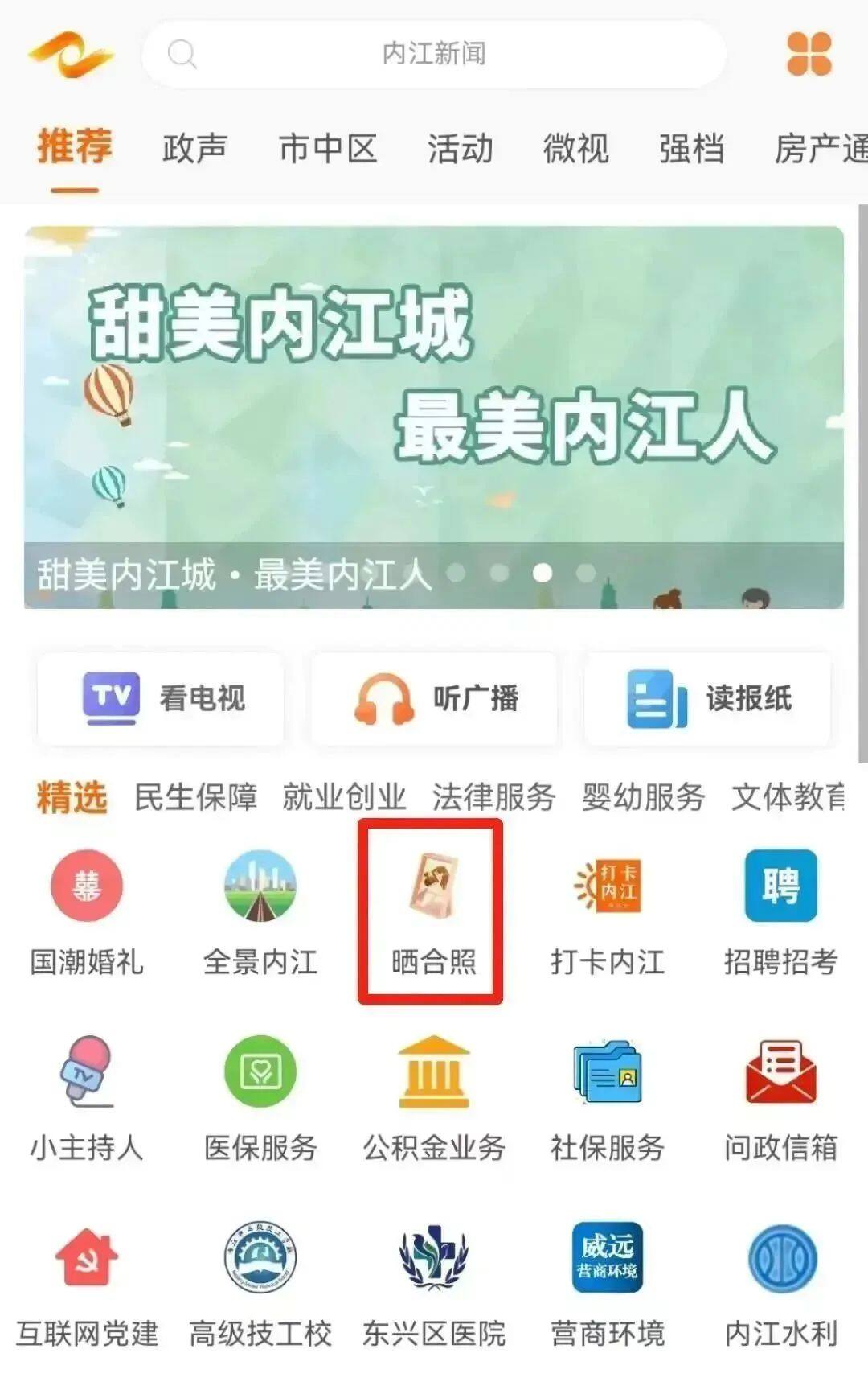 ▲从大内江APP首页“晒合照”
