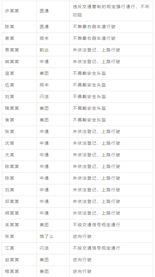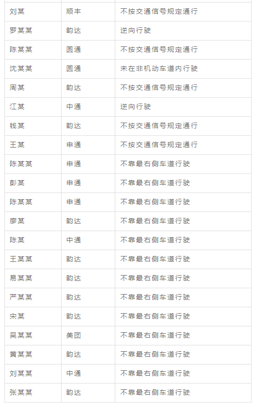 通报快递和即时配送从业人员个人