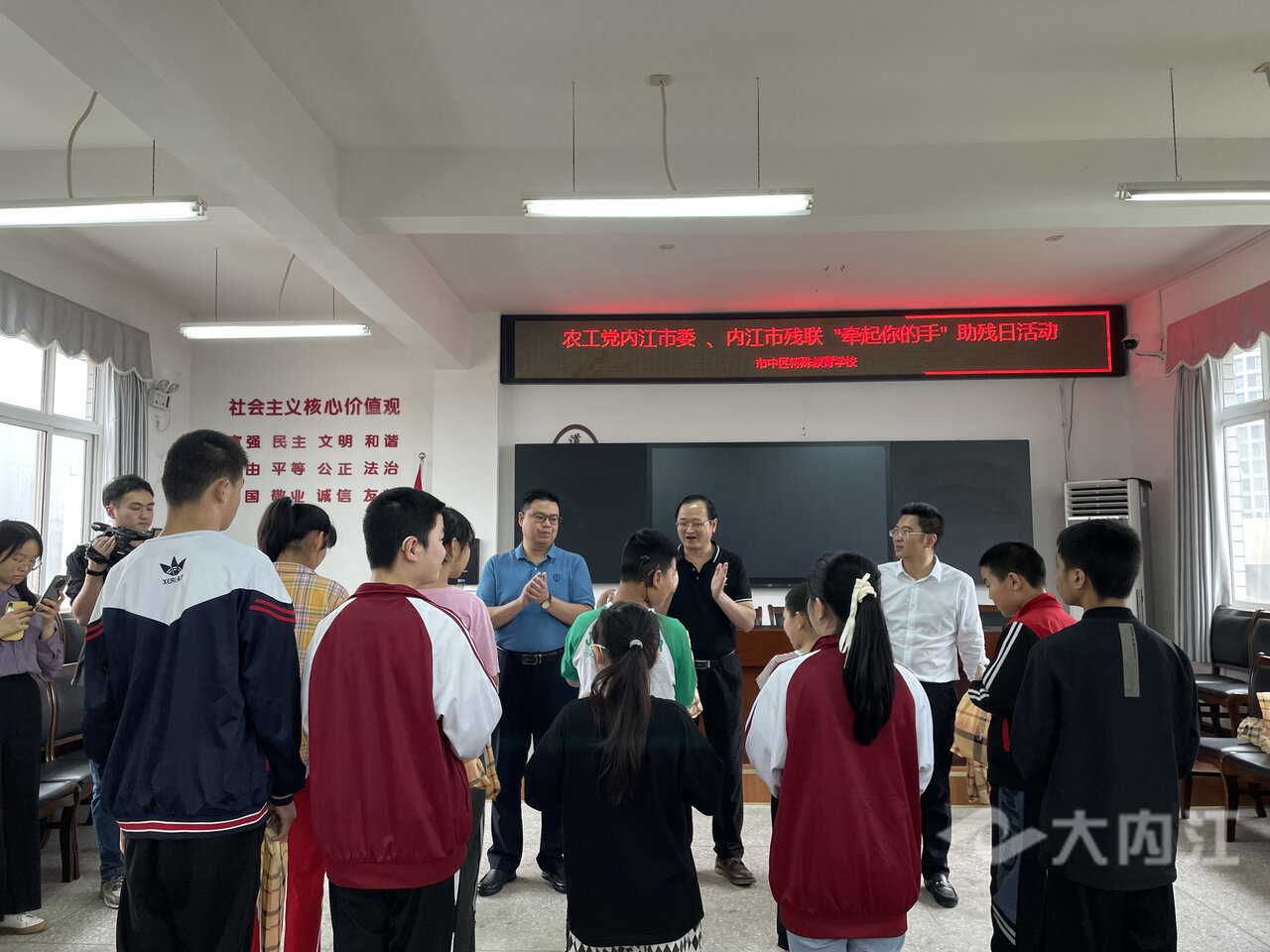 时间:2023-05-22 10:27:48 来源:内江广播电视台日前,在全国第33个助残日到来之际,农工党内江市委协同市残联、农工党内江市市中区总支到内江市特殊教育学校开展“牵起你的手”助残日活动。