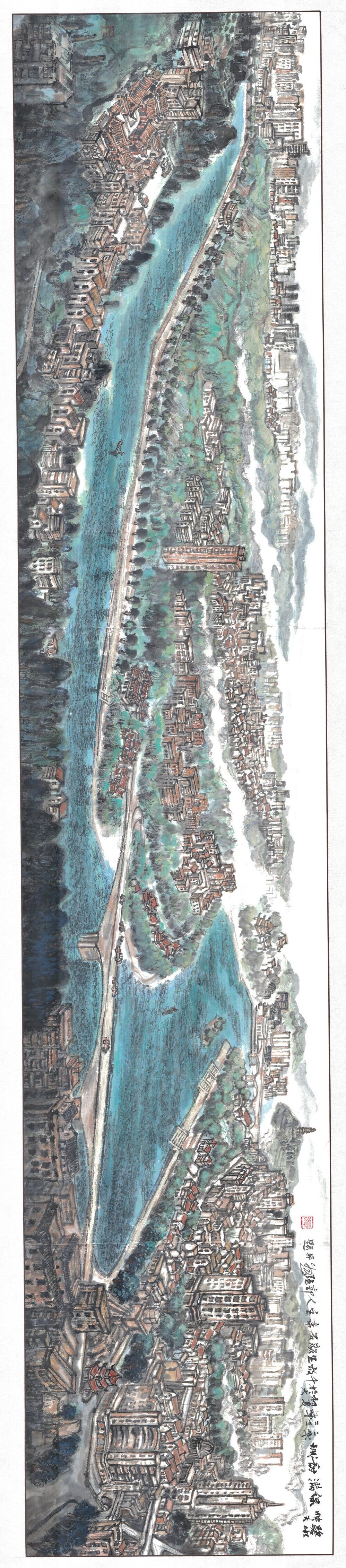 第一幅画:《碧水映天 绿满甜城》