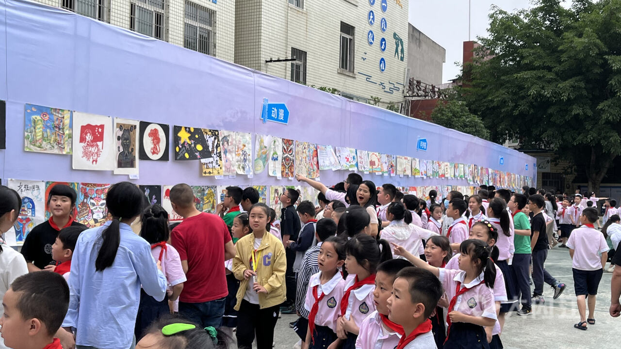 内江市实验小学举行“庆六一”一年级家长日暨校园艺术节“艺术风采章”争章活动,邀请家长参观孩子们的书画艺术作品和现场书画展示,并观摩一年级的活动课。