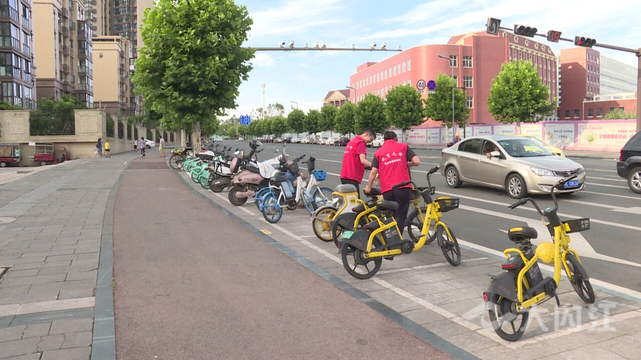6月12日,记者先后在市中区环城路、东兴区玉屏街看到,来自市档案馆、市乡村振兴局的志愿者身着红马甲,通过清理人行道上的垃圾、 规范共享单车停放秩序等实际行动,为我市创建全国文明城市助力。