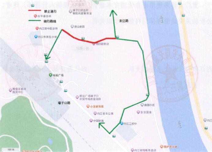 为避免发生交通拥堵,途径圣江路与铁站街东巷交叉路口的车辆、行人可从如下路线绕行。