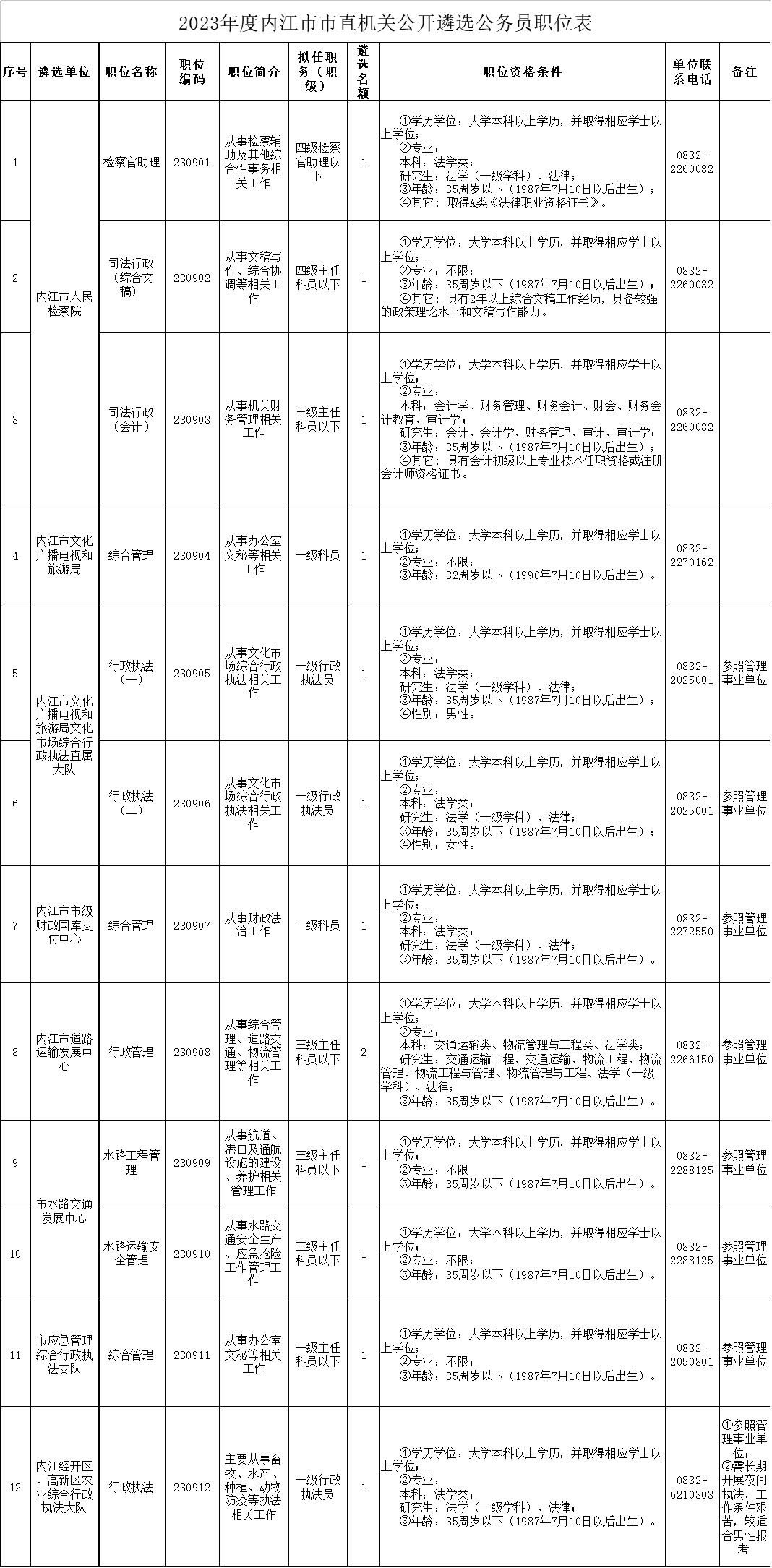 职位表公布!内江公开遴选、选调公务员