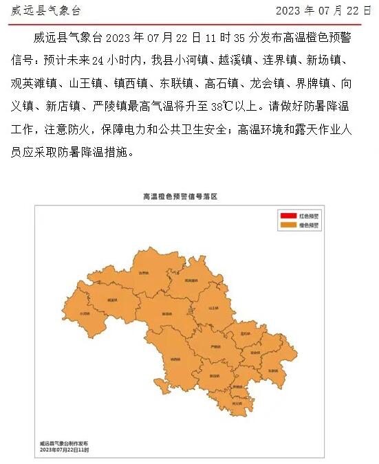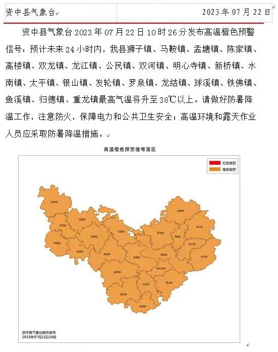 同时,内江市气象台、东兴区气象台、资中县气象台和威远县气象台相继发布高温橙色预警信号,详情如下。